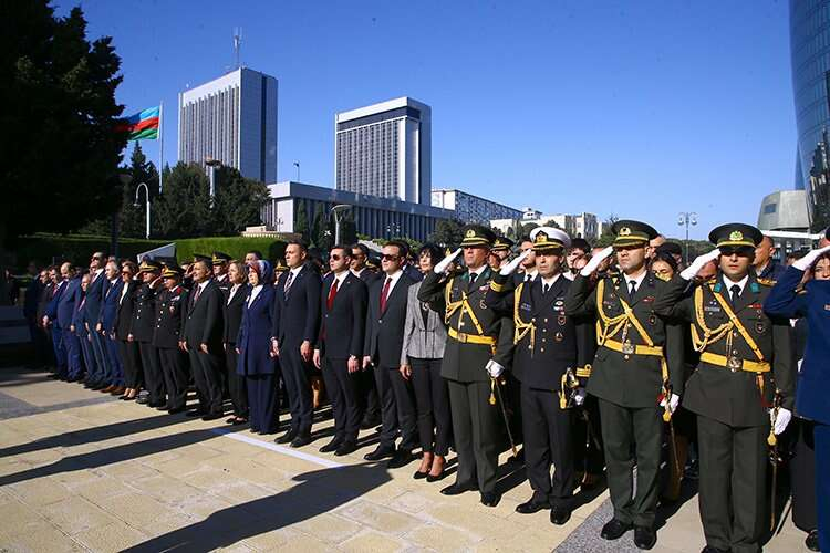 Azerbaycan'ın başkenti Bakü'deki Türk Şehitliği'nde Türkiye Cumhuriyeti'nin 100. yılı dolayısıyla tören düzenlendi.