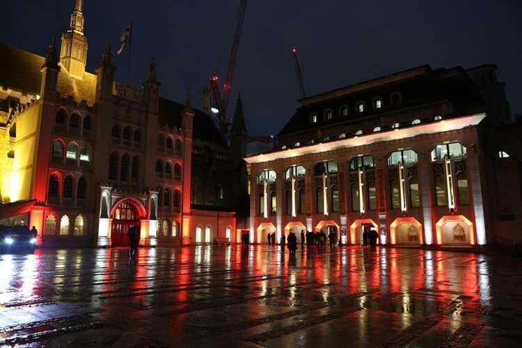Londra'nın tarihi ve kültürel sembollerinden olan ve 2 bin yıllık geçmişi bulunan Guildhall binasının dış cephesi de gece boyunca Türk bayrağı renkleriyle aydınlatıldı.