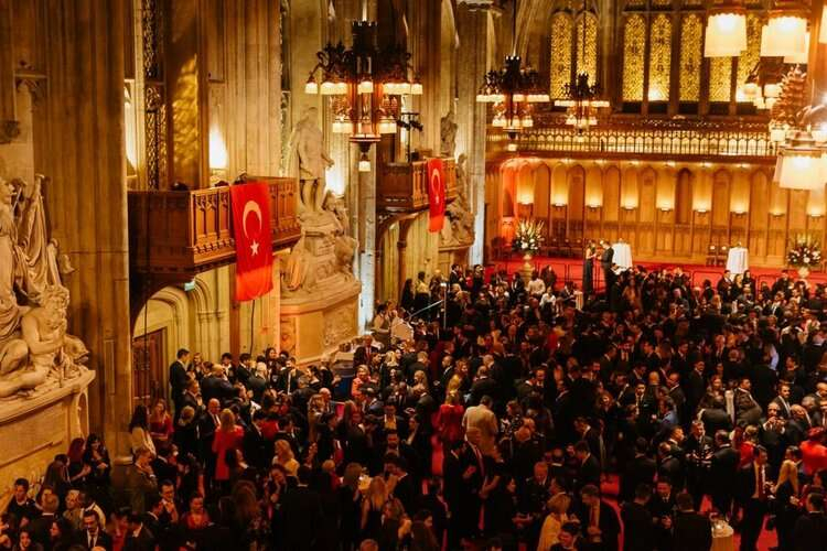 Türkiye'nin Londra Büyükelçiliği tarafından Cumhuriyet'in kuruluşunun 100. yılı vesilesiyle başkentin tarihi binalarından Guildhall'da, üst düzey İngiliz yetkililer, çeşitli ülkelerin diplomatik temsilcileri ile İngiltere'deki Türk toplumu ve iş dünyasından yaklaşık bin davetlinin katılımıyla resepsiyon yapıldı.