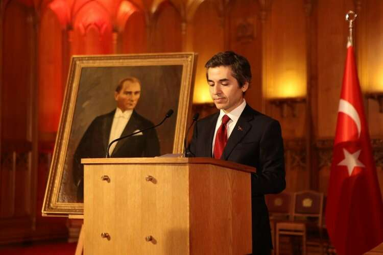 Resepsiyona ev sahipliği yapan Türkiye'nin Londra Büyükelçisi Osman Koray Ertaş, burada yaptığı konuşmada, "Ne mutlu ki Cumhuriyet'imizin 100. yılını Londra'da da haklı bir gurur, mutluluk ve coşkuyla kutluyoruz." ifadesini kullandı.