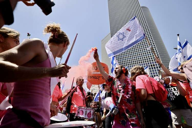 Başta Tel Aviv olmak üzere Batı Kudüs, Hayfa gibi kentlerdeki gösterilere binlerce İsrailli katıldı. Ellerinde İsrail bayraklarıyla "demokrasi" sloganları atan göstericiler, koalisyon hükümetindeki aşırı sağcı politikacıları eleştiren dövizler taşıdı.