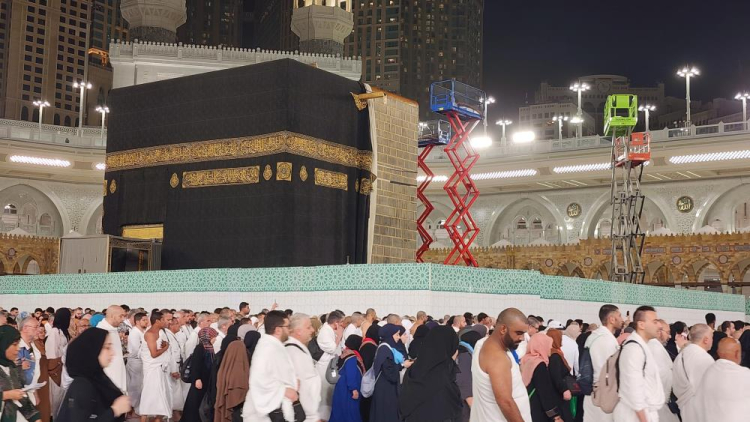 Erzurum'dan kutsal topraklara umre ziyareti yapan vatandaşlar, öğle namazı sonrası tavaf yaparken Kabe-i Muazzama’daki tamirata şahitlik etti. İbadetlerine devam eden Müslümanlar, hemen yanlarındaki 5 gündür devam eden çalışmayı heyecanla izledi.