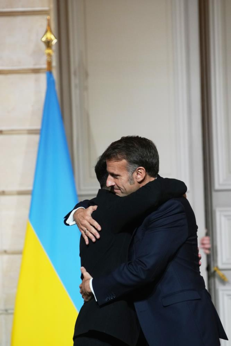 İki lider, Elysee Sarayı'ndaki görüşmelerin ardından ortak basın toplantısı düzenledi. Fransa Cumhurbaşkanı Macron, ortak basın toplantısında Ukrayna'da savaşın sona ermesine yönelik görüşmelerin Ukrayna'nın geleceği ve Avrupa'nın güvenliği açısından "bir dönüm noktası" teşkil edebileceğini söyledi. ABD'nin Ukrayna'da savaşı sona erdirmeye yönelik arabuluculuk girişimlerine ilişkin değerlendirmesinde Macron, "Toprak meselelerini tartışabilecek tek taraf, uluslararası tanınırlığı olan ve egemen bir devlet olan Ukrayna'dır" dedi.