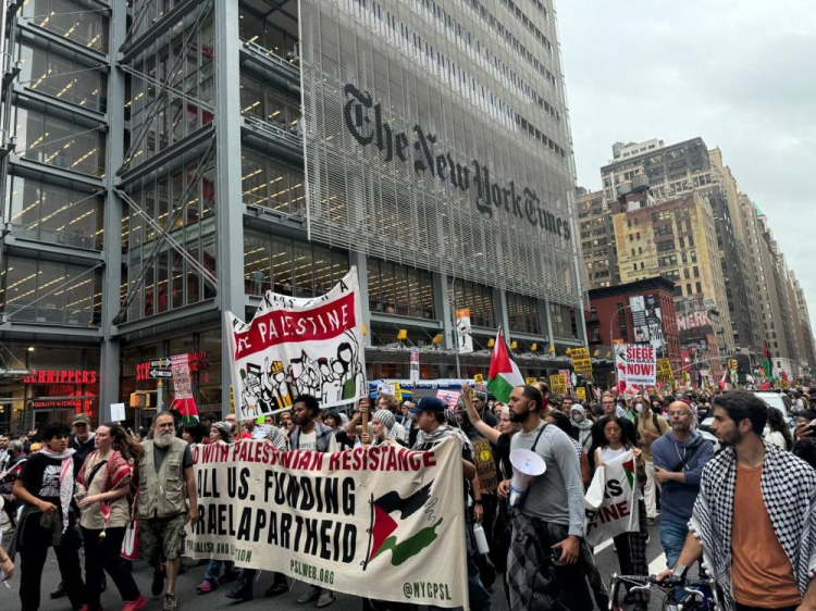 Birleşmiş Milletler Genel Kurulu'nun devam ettiği ABD'nin New York kentinde binlerce Filistin yanlısı, İsrail Başbakanı Binyamin Netanyahu karşıtı gösteri düzenledi.