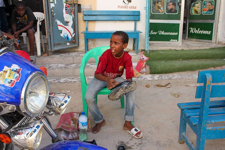 Ayakkabı boyacısı olarak çalışmak zorunda olan 11 yaşında Muhammed Sayid Ali, her gün sabah 07.00'de kalkıp bütün gününü Mogadişu'nun işlek yerlerinden Taleh'in ana caddesinde dolaşarak geçirdiğini anlattı.