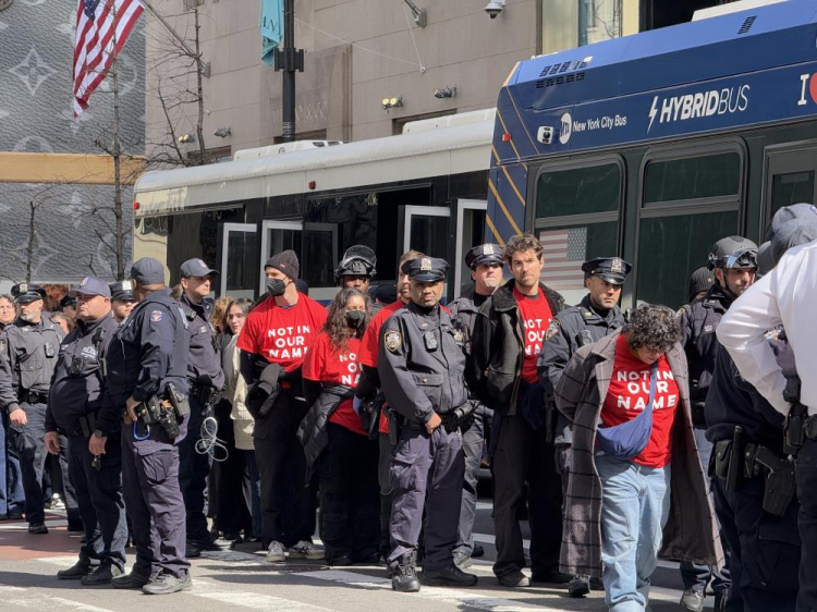 Yahudi Barış Sesi (Jewish Voice for Peace) adlı grup, Filistin yanlısı protestolara öncülük eden aktivist Mahmoud Khalil’in gözaltına alınmasını protesto etmek için New York’taki Trump Tower lobisini işgal etti. Polis, 98 protestocuyu gözaltına aldı.