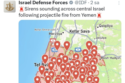 İsrail ordusu Gazze Şeridi'ndeki katliamlarını sürdürürken, Yemen'den İsrail’e bir misilleme saldırısı daha yapıldı. İsrail Savunma Kuvvetleri’nden (IDF) yapılan açıklamada, Yemen’den fırlatılan bir füze nedeniyle ülkenin birçok bölgesinde sirenlerin çaldığı kaydedildi. Füzenin hava savunma sistemi tarafından engellendiği belirtilirken, İsrail basını saldırı nedeniyle herhangi bir hasar meydana gelmediğini duyurdu. Son gelişme ile birlikte Yemen’deki İran destekli Husilerin son 24 saatte İsrail’e yönelik gerçekleştirdiği füze saldırılarının sayısı en az 2’ye yükselmiş oldu.