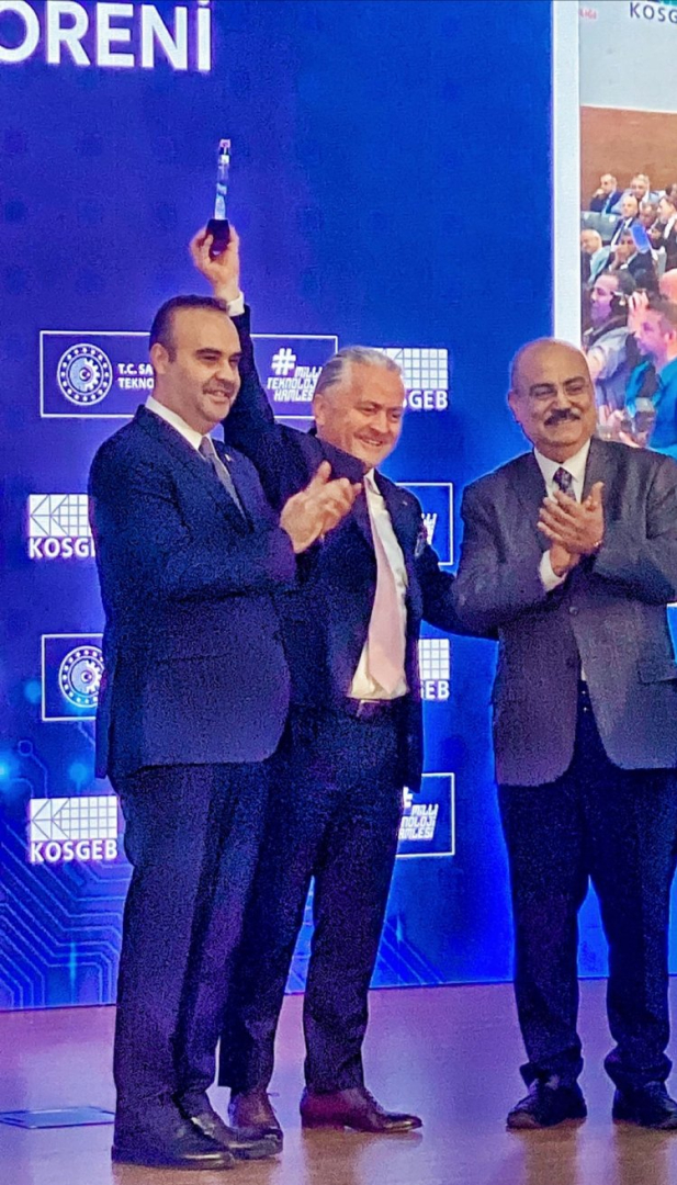 Bursa’nın yerli firması Trend Kurumsal Hizmetler firma sahibi Abdullah Bayram, ödülünü Sanayi ve Teknoloji Bakanı Mehmet Fatih Kaçır’dan aldı.