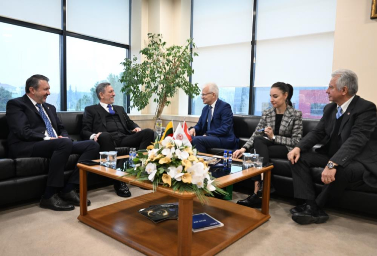 Türkiye’nin ihracat odaklı hedefleri doğrultusunda çalışmalarını sürdüren BTSO, geçen hafta da yoğun ziyaretlere ev sahipliği yaptı. BTSO Yönetim Kurulu Başkanı İbrahim Burkay, Litvanya Büyükelçisi Ricardas Degutis’i ağırlayarak, iki ülke ilişkileri hakkında bilgi alışverişinde bulundu. Büyükelçilik Müsteşarı Dalija Ignataviciute ve Litvanya Bursa Fahri Konsolosu Berat Tunakan’ın da yer aldığı ziyarette konuşan BTSO Başkanı Burkay, iş dünyası olarak Türkiye ve Litvanya arasındaki siyasi ve ekonomik ilişkilerin gelişmesinden memnuniyet duyduklarını ifade etti.