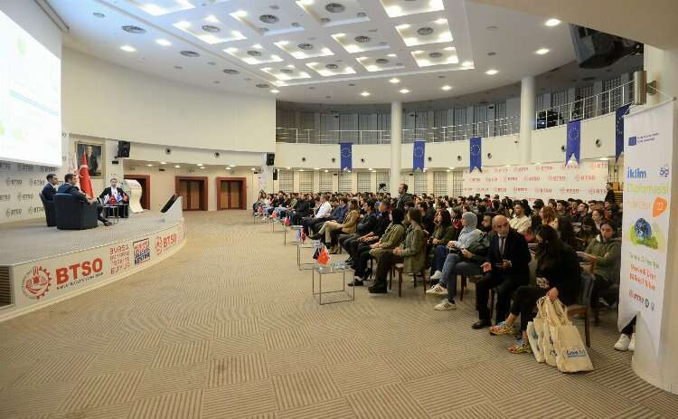 Bursa Ticaret ve Sanayi Odası (BTSO) çatısı altında faaliyet gösteren Bursa AB Bilgi Merkezi tarafından İklim Diplomasisi Haftası dolayısıyla gerçekleştirilen ‘İklim Değişikliği ile Mücadelede Enerjinin Verimli Kullanımı Semineri’nde ‘Verimli üret, bilinçli tüket’ mesajı verildi.