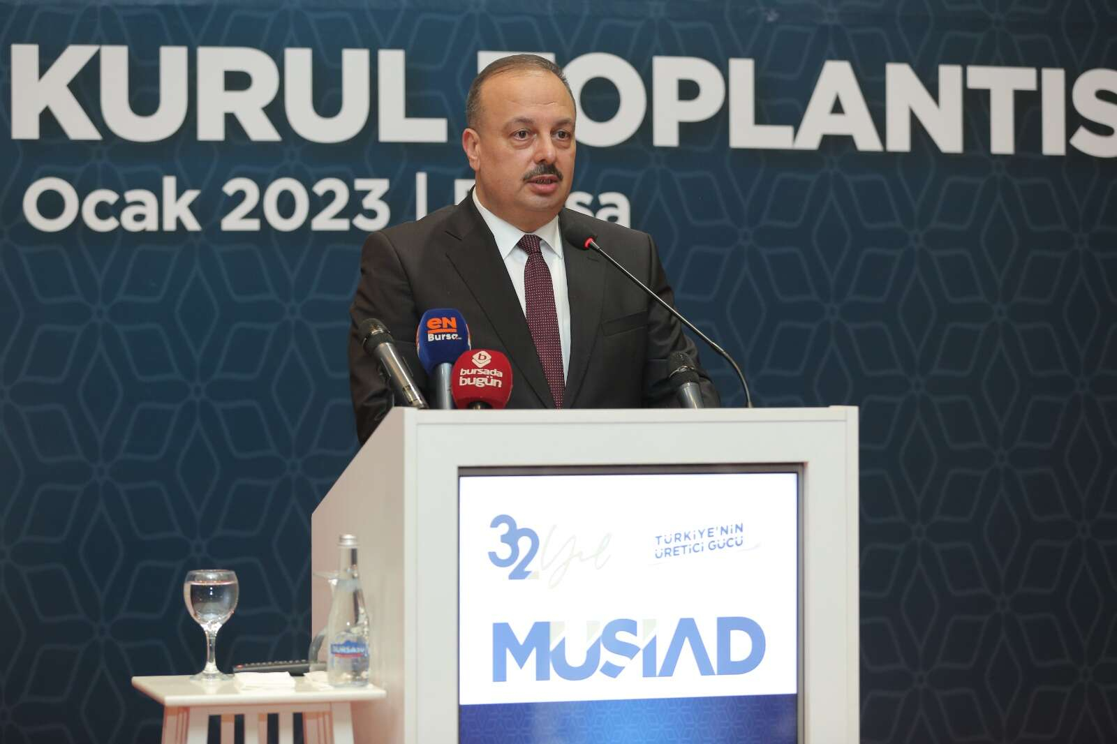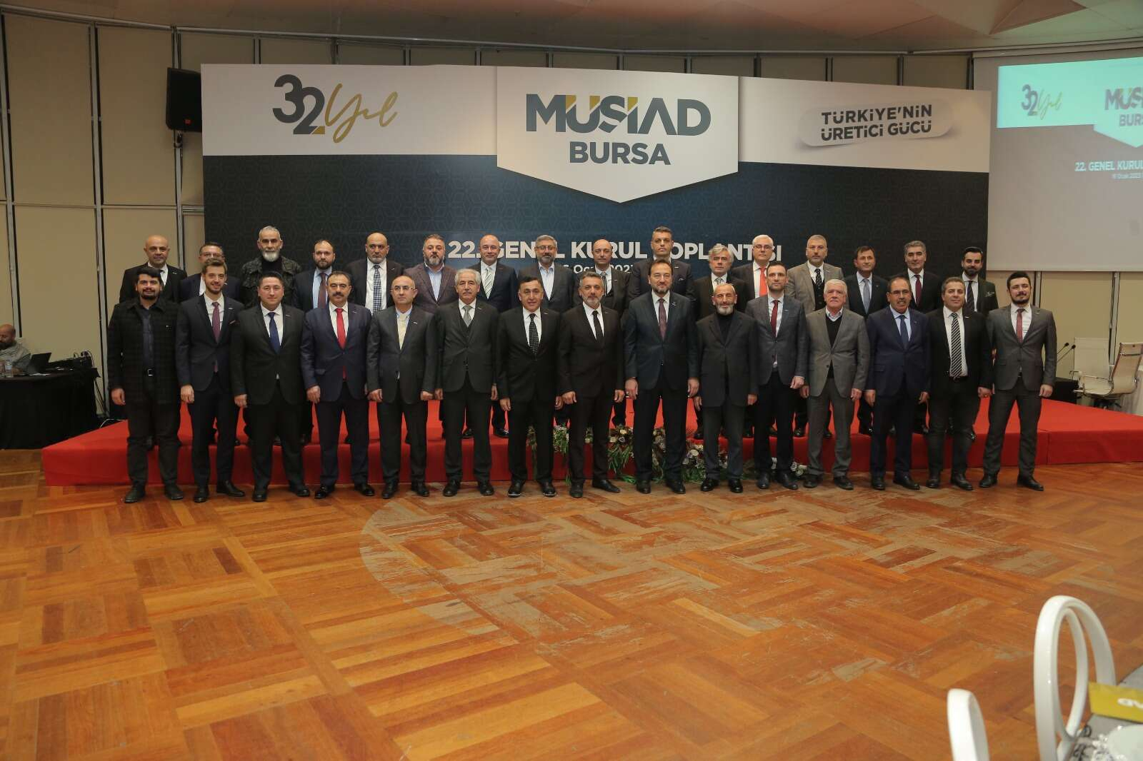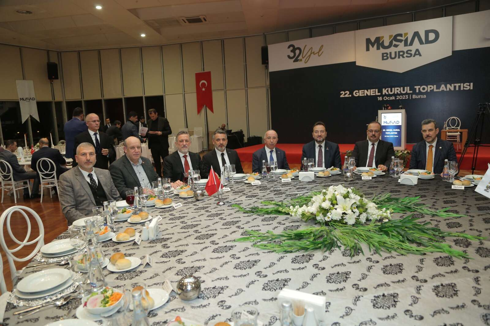 Merinos Atatürk Kongre ve Kültür Merkezi Yıldırım Bayezid Salonu'nda gerçekleştirilen MÜSİAD Bursa Şubesi'nin 22. Olağan Genel Kurulu'nda; Bursa Valisi Yakup Canbolat, MÜSİAD Genel Başkanı Mahmut Asmalı, AK Parti Bursa Milletvekilleri Mustafa Esgin ile Refik Özen, Bursa Büyükşehir Belediye Başkanı Alinur Aktaş, BUÜ Rektörü Prof. Dr. Ahmet Saim Kılavuz, BTSO Başkanı İbrahim Burkay, AK Parti Bursa İl Başkanı Davut Gürkan, Yıldırım Belediye Başkanı Oktay Yılmaz, MÜSİAD Genel Merkez Yönetim Kurulu üyeleri, MÜSİAD şube başkanları, kamu kurumları temsilcileri, STK başkanları ve çok sayıda MÜSİAD üyesi hazır bulundu.
