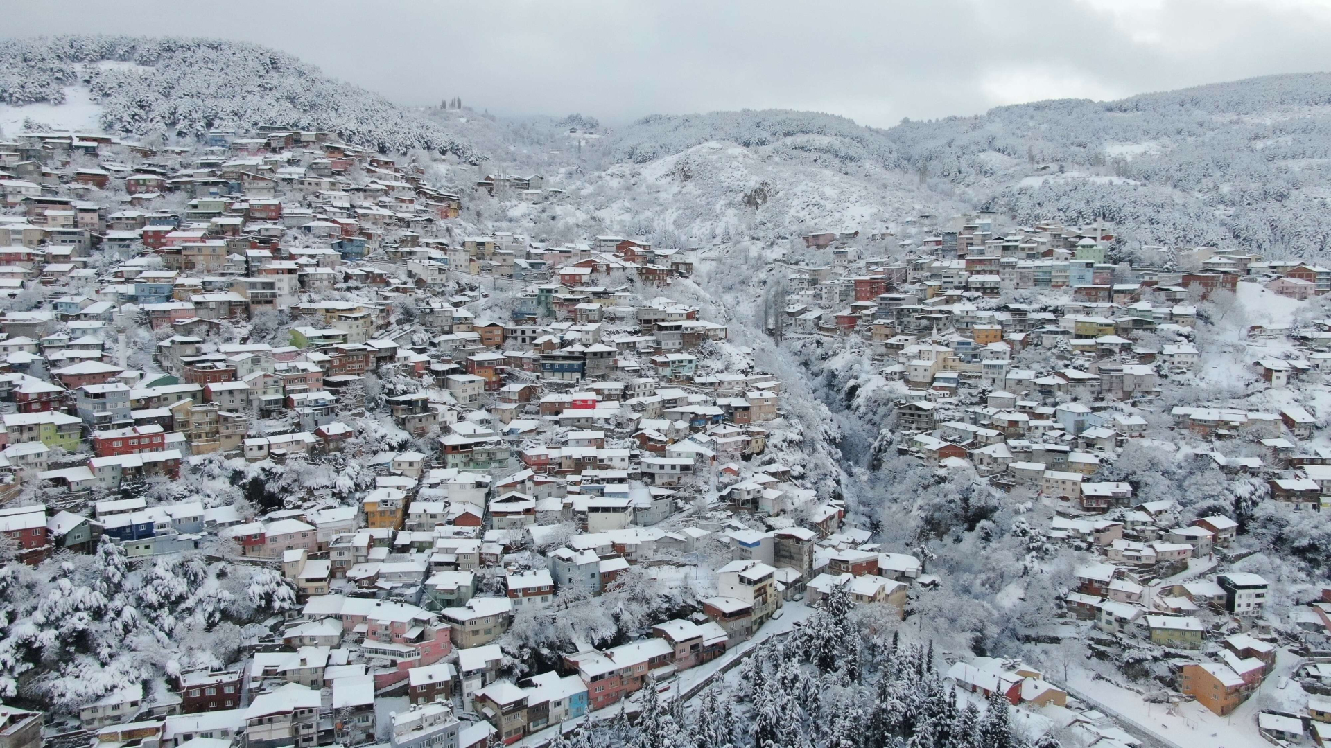 Bursa’da kar yağışı kartpostallık görüntüler oluşturdu
