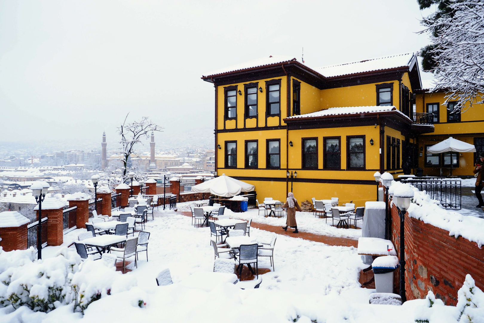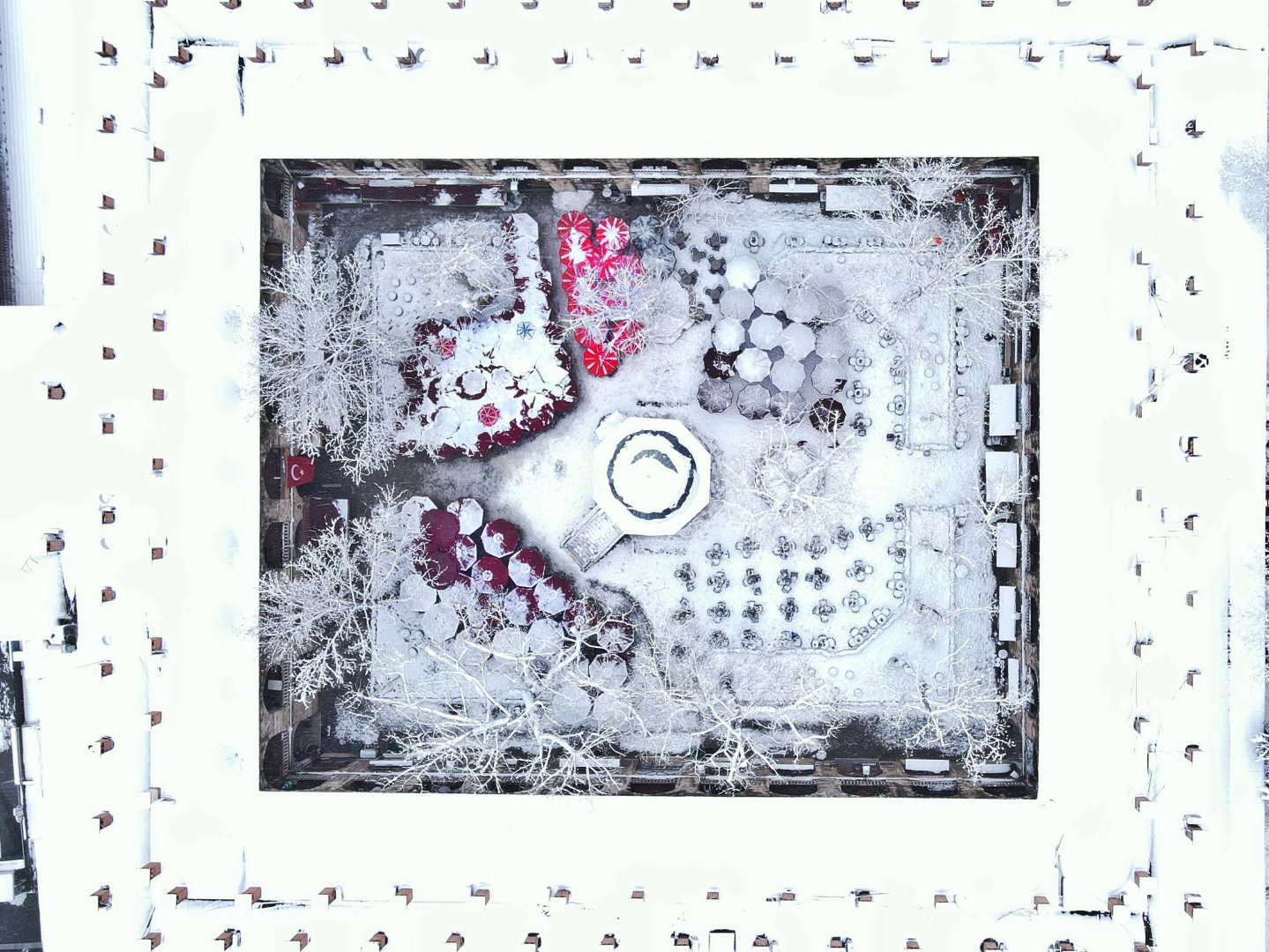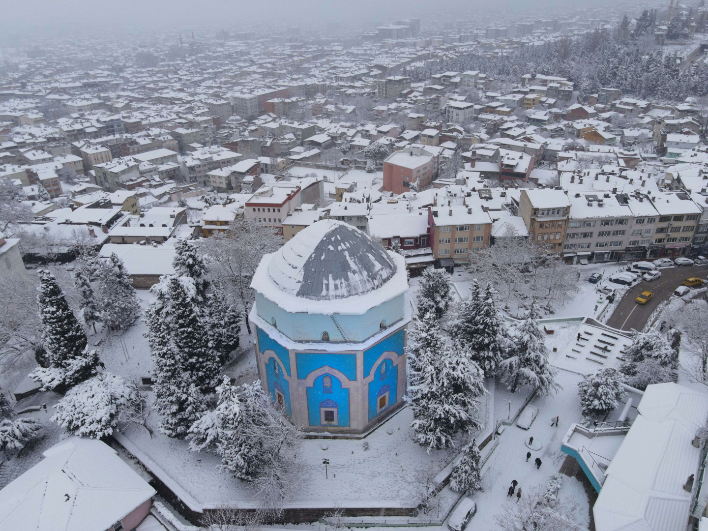 Bursa'da karlar altındaki saat kulesi havadan görüntülendi