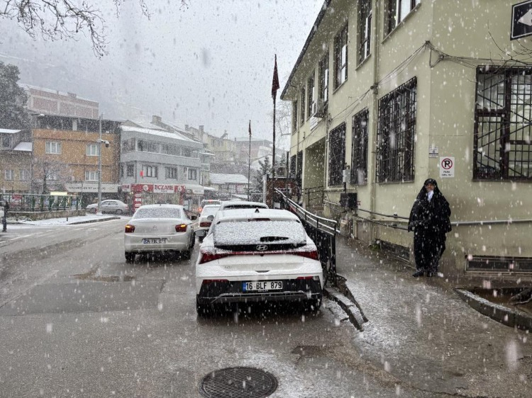 Bursa'da sabah saatlerinde etkili olan yoğun kar yağışı şehre beyaz gelinlik giydirdi. Meteoroloji'nin uyarılarının ardından beklenen soğuk hava etkisini gösterdi. Sabah saatlerinden itibaren kent merkezinde başlayan yağış, herkese sürpriz yaşattı. 8.kilometreden itibaren Uludağ'a gidecek araçların zincirsiz çıkışına izin verilmiyor.