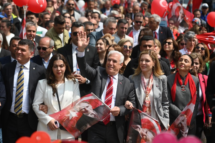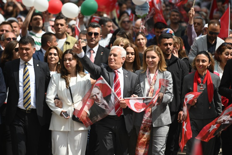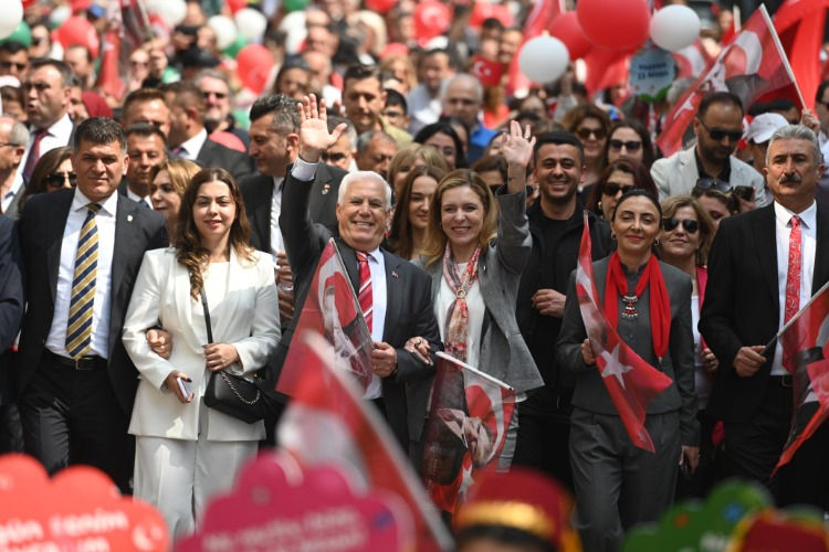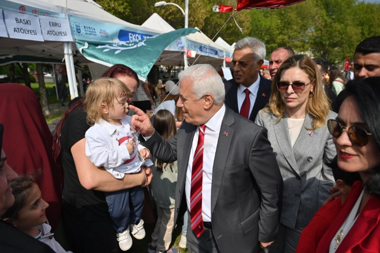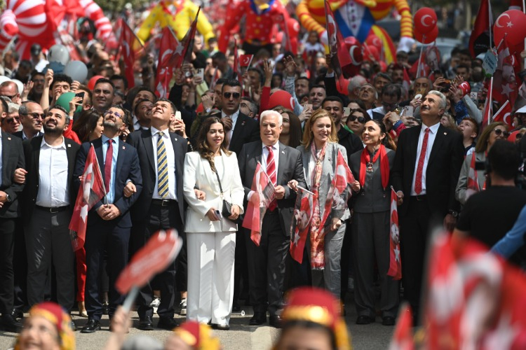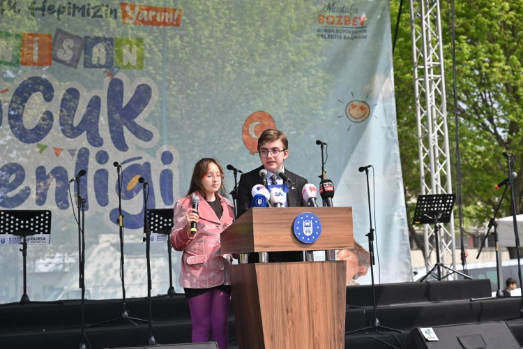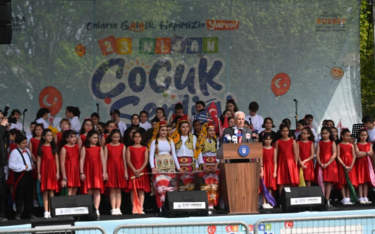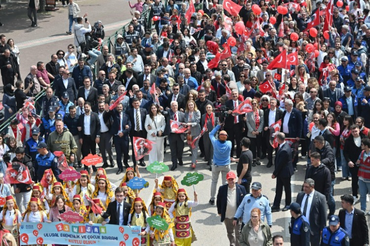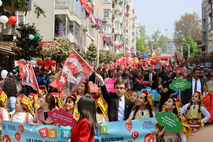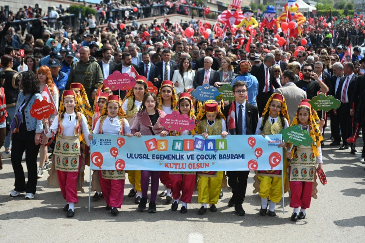 Ulusal egemenliğimizin perçinlendiği 23 Nisan Ulusal Egemenlik ve Çocuk Bayramı, tüm Türkiye’de olduğu gibi Bursa’da da büyük bir coşkuyla kutlandı. Bursa Büyükşehir Belediyesi tarafından ‘Onların gülüşü, hepimizin yarını’ teması ile hazırlanan ‘Çocuk Şenliği’, dolu dolu program içeriğiyle çocuklara unutulmaz bir gün yaşattı. 23 Nisan coşkusu, yüzlerce çocuk ve ailelerinin katılımıyla Çarşıbaşı’ndan Atatürk Stadyumu Kütüphanesi’ne doğru yapılan kortej yürüyüşüyle başladı. Ellerindeki Türk bayraklarıyla marşlar ve şarkılar söyleyerek yürüyen çocuklara, Büyükşehir Belediye Başkanı Mustafa Bozbey ve eşi Seden Bozbey, CHP İl Başkanı Nihat Yeşiltaş, CHP PM Üyesi Canan Taşer, CHP Bursa Milletvekilleri Nurhayat Altaca Kayışoğlu ve Kayıhan Pala, Büyükşehir Belediyesi Genel Sekreteri Doç. Dr. Ergül Halisçelik, Bursa Kent Konseyi Başkanı Prof. Dr. Ertuğrul Aksoy, ilçe başkanları, Büyükşehir Belediyesi bürokratları da eşlik etti. Çocuklar, ellerindeki pankart, Türk ve Atatürk bayraklarıyla Atatürk Stadyumu Kütüphanesi’ne kadar bando eşliğinde coşkuyla yürüyüş gerçekleştirdi.