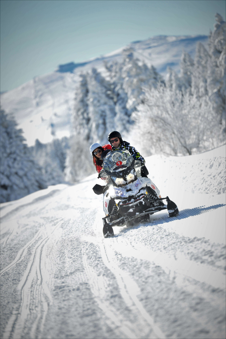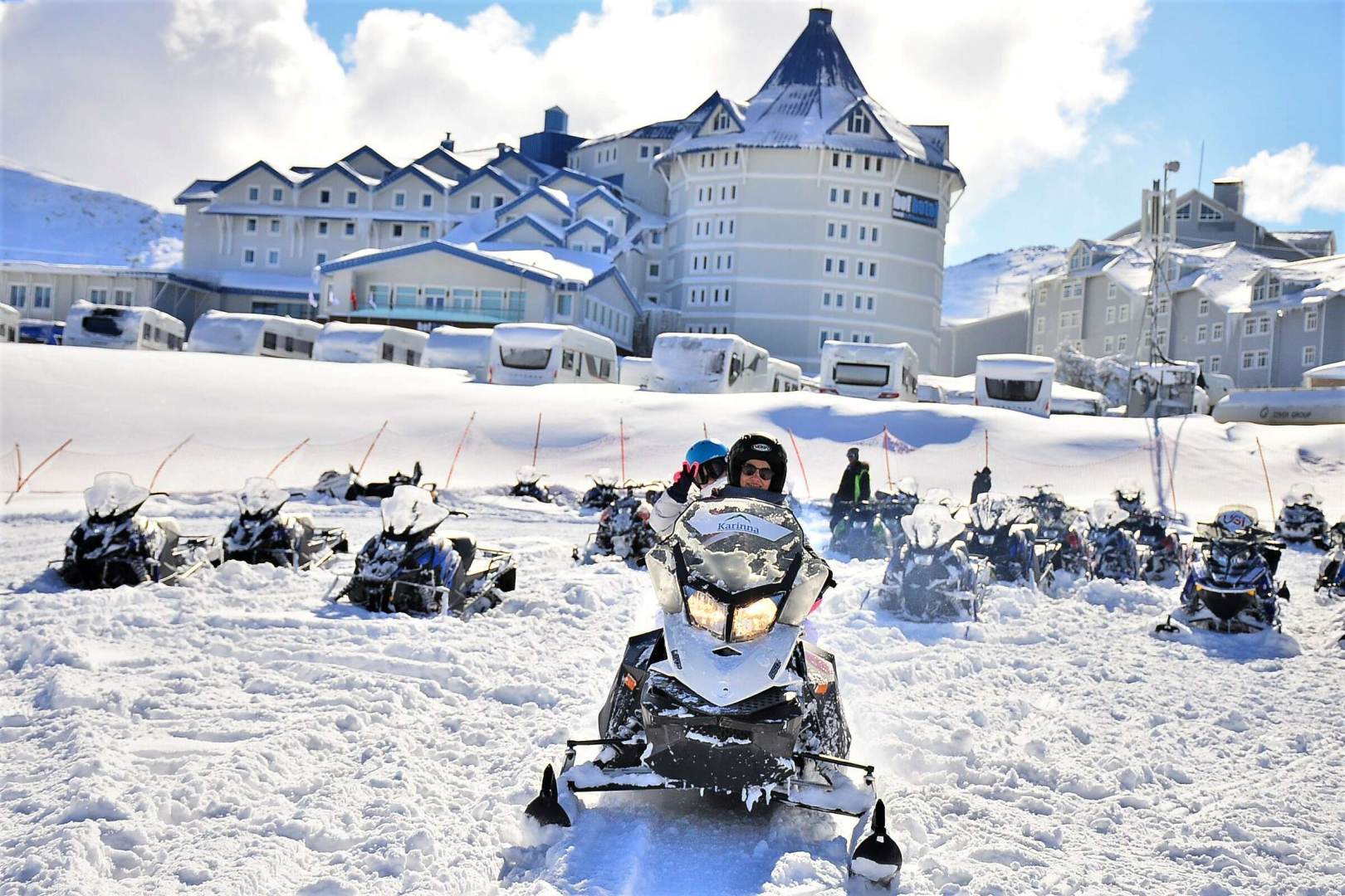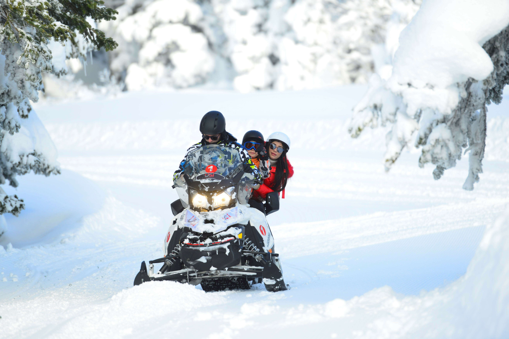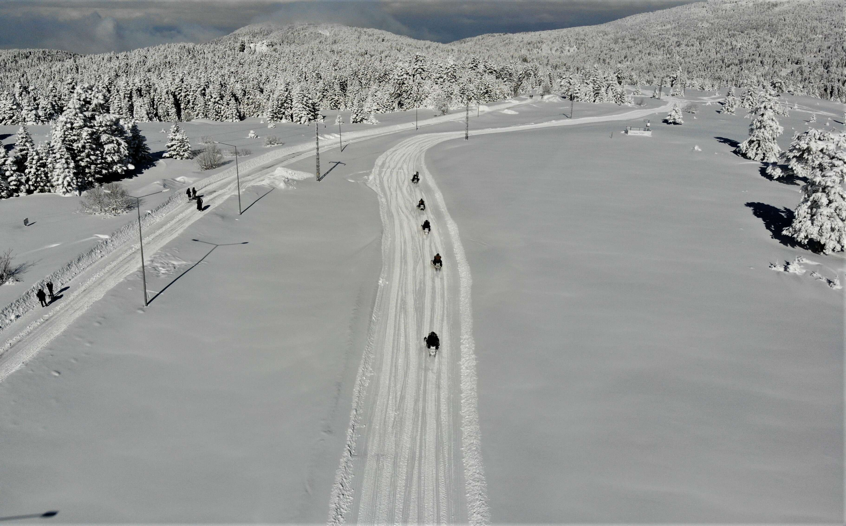 Uludağ'ın karda gidilmeyen yerlerini kar motoruyla keşfediyorlar