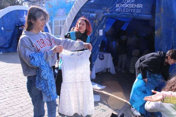 Deprem bölgesine gönderilmek üzere yollanan eşyaları ayrıştıran İzmirli gönüllüler, bazı ürünler karşısında adeta çileden çıkıyor. Yoğun bir mesai ile çalışan gönüllüler; kirli ve yıpranmış kıyafetler, topuklu ayakkabılar, abiye elbiseler, yazlık giysileri deprem bölgesine göndermiyor ancak bu durum onlara zaman da kaybettiriyor