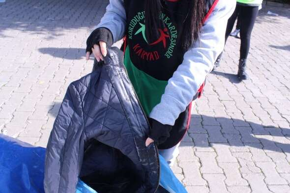 Kültür Park Celal Atik Salonu önünde kurulan iki çadırda görevli gönüllüler, bu çadırlarda sadece ikinci el ürünleri kabul ediyor ve bunları ayrıştırıyor. Duyarlı vatandaşların gönderdiği ürünler toplanarak tırlara yükleniyor. Gönderilen bazı ürünler ise görenlere pes dedirtiyor.