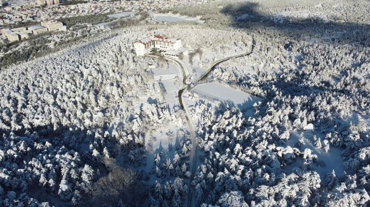 Yoğun kar yağışıyla birlikte doğa ve şehir siluetinin birleştiği Çamlık Milli Parkı, kış aylarında da Yozgat’ın önemli cazibe merkezlerinden biri olmayı sürdürüyor.