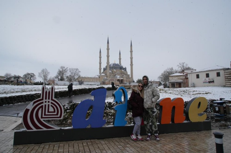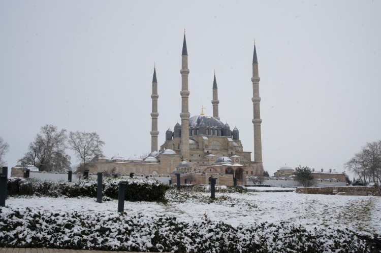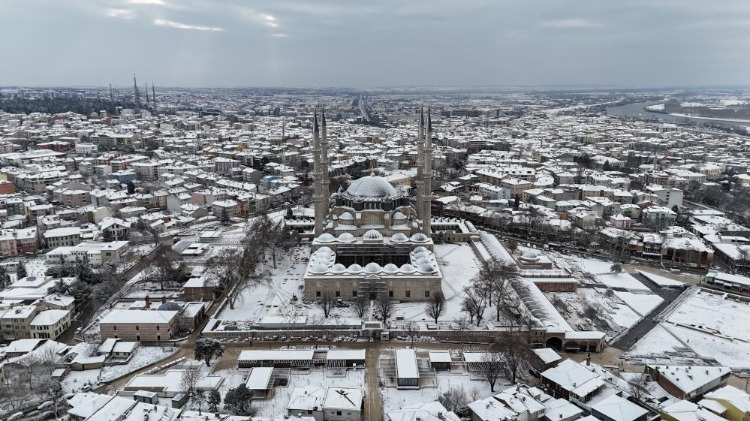 Kentte etkili olan kar yağışıyla Selimiye Camii başta olmak üzere tarihi mekanlar ile cadde ve sokaklar beyaz örtüyle kaplandı.