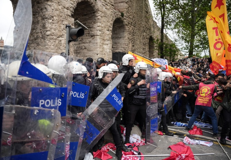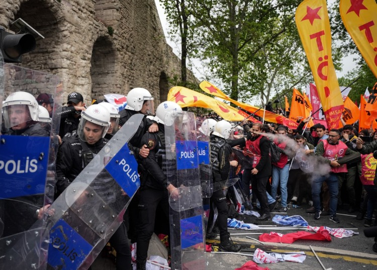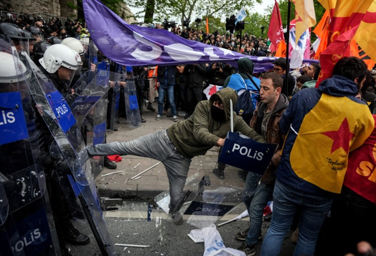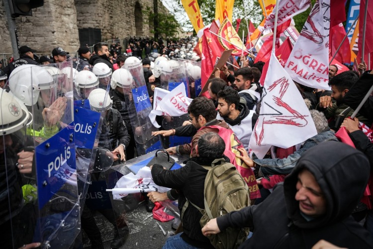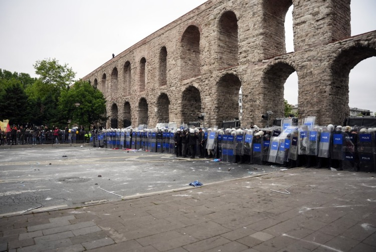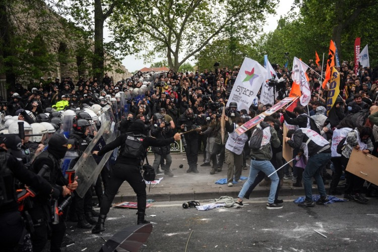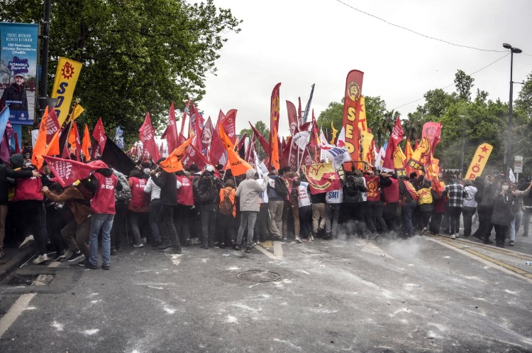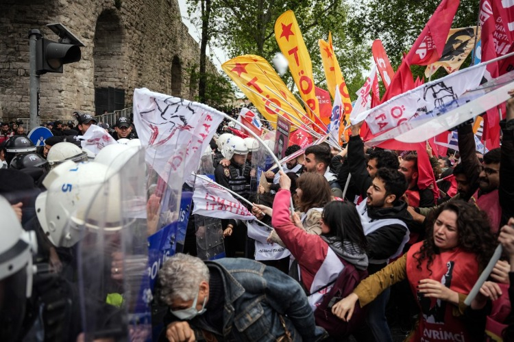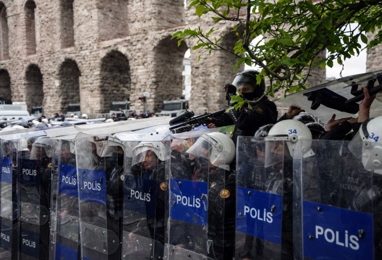 Saraçhane'de 1 Mayıs Emek ve Dayanışma Günü nedeniyle toplanarak yasağa uymayan çeşitli sendika üyelerine polis ekipleri müdahale ederken o anlar fotoğraf karelerine yansıdı.