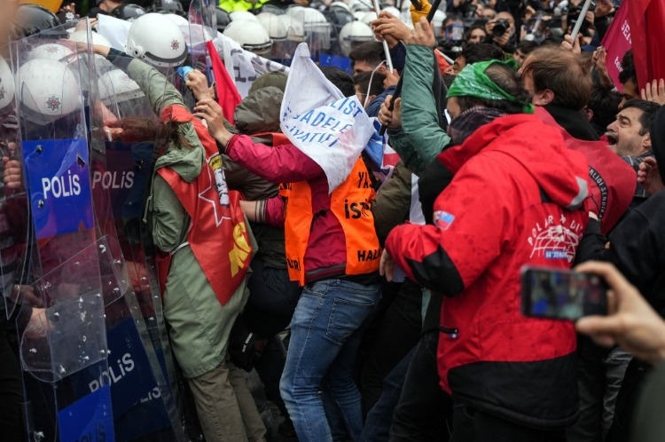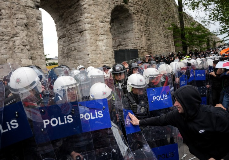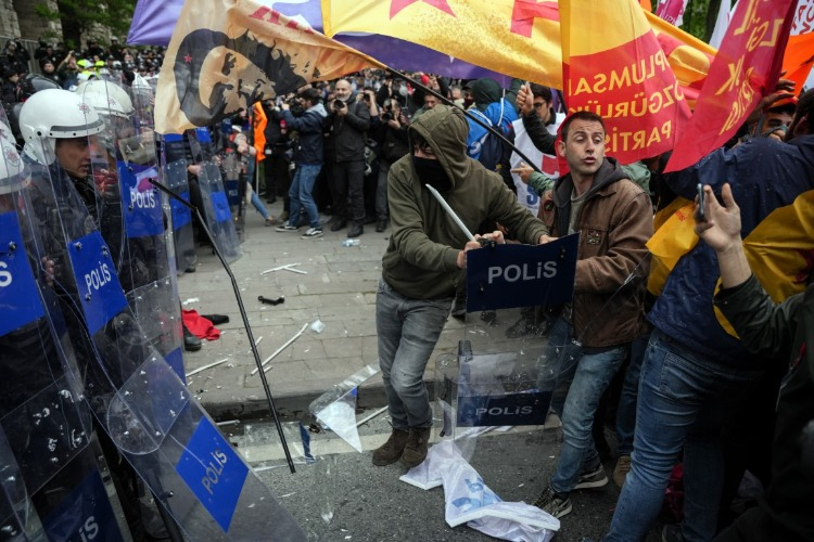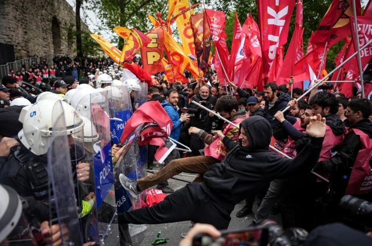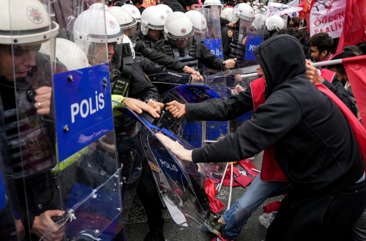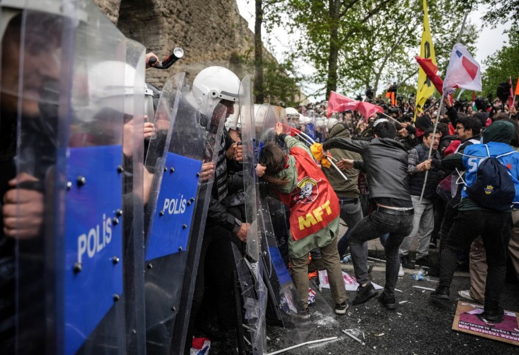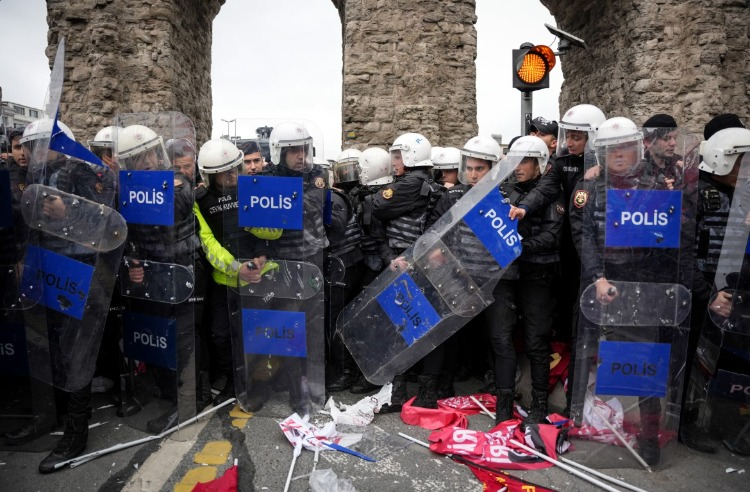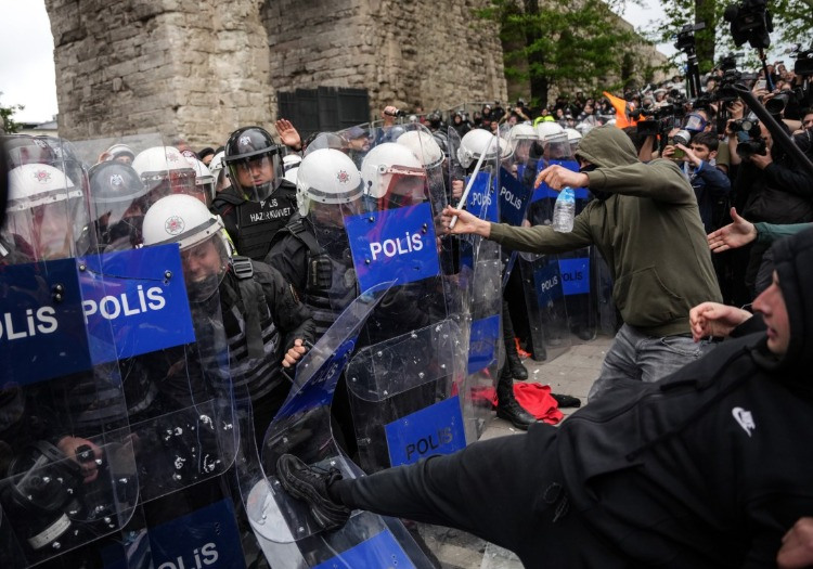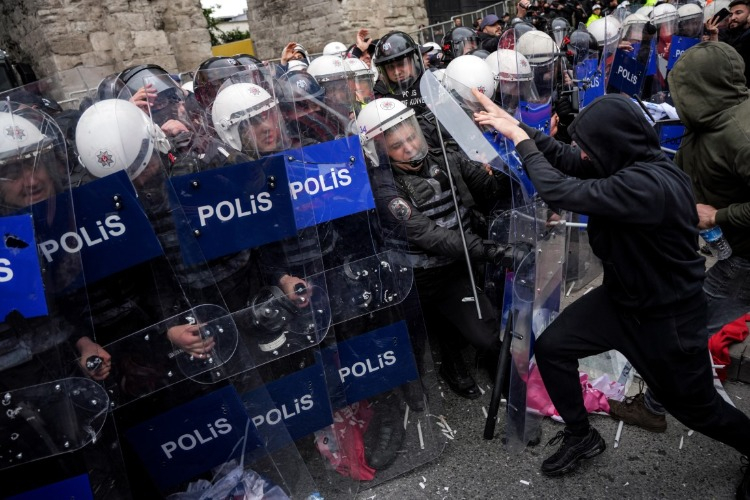Saraçhane'de 1 Mayıs Emek ve Dayanışma Günü nedeniyle toplanarak yasağa uymayan çeşitli sendika üyelerine polis ekipleri müdahale ederken o anlar fotoğraf karelerine yansıdı.