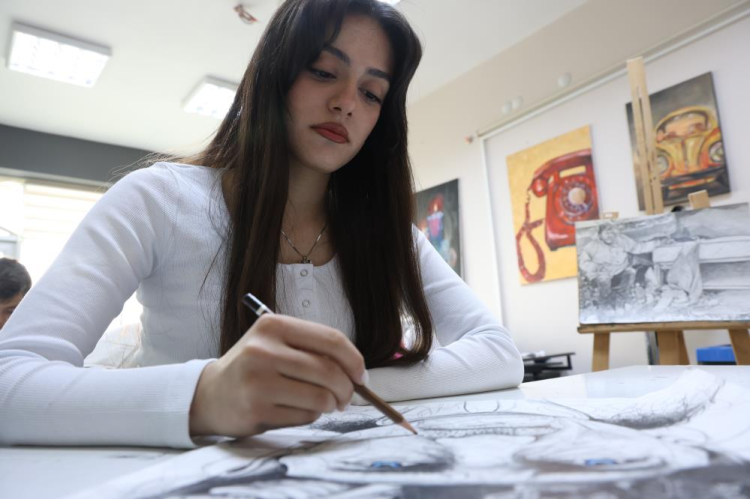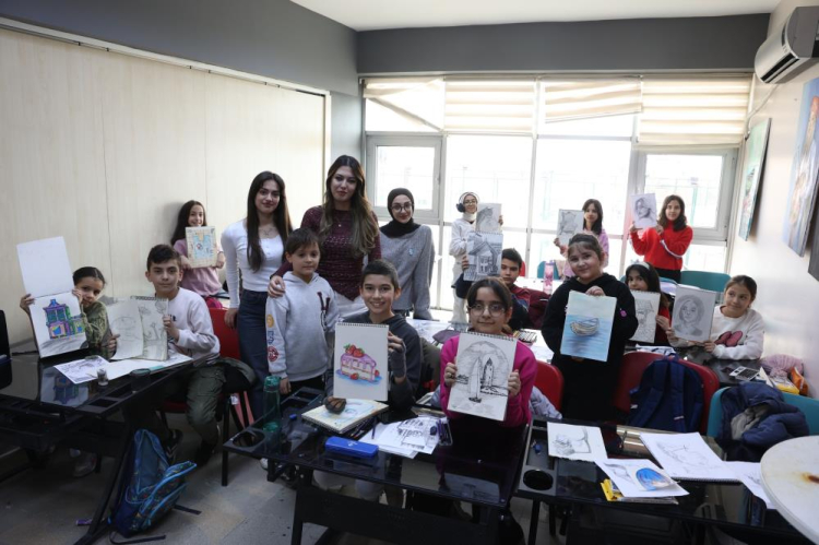 Gençlik Merkezinde 7-29 yaş aralığındaki öğrencilere ücretsiz resim eğitimi verildiğini belirten Zehra Karaman'ın öğretmeni Sıdıka Kopar, Karaman’ın yetenekli bir öğrenci olduğunu ve çalışmasının sosyal medyada büyük ilgi gördüğünü ifade etti. Kopar, "Eğitimlerdeki yaş aralığımız, 7-29 yaş. Buradaki kurslarımız ücretsiz bir şekilde verilmektedir. Burada, öğrencilerimiz hobi amaçlı da gelmek isteyen oluyor, daha çok sınav odaklı da gelmek isteyen oluyor. Burada artık bir öğretmen öğrenci ilişkisinden çok bir aile gibi olduk. Sürekli beraberiz ve çalışmalar yapıyoruz. Bunlardan biri olan Zehra, 16 yaşında lise 3 öğrencisi. Ders sırasında imgesel çalışması yaparken, deprem konulu imgesel bir çalışma yapalım dedik. Bu çalışmayı yaptık. Müdürümüz sayesinde sosyal medya hesaplarından paylaşıldı, çok beğenildi. Çalışmalarımız burada devam ediyor. Akrilik, karakalem gibi her tarzda çalışmalar yapmaktayız" şeklinde konuştu.