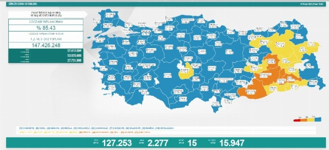 Sağlık Bakanlığı'nın açıkladığı güncel verilere göre, bugün Koronavirüs nedeniyle 15 kişi daha hayatını kaybetti, 2 bin 277 yeni vaka tespit edildi.