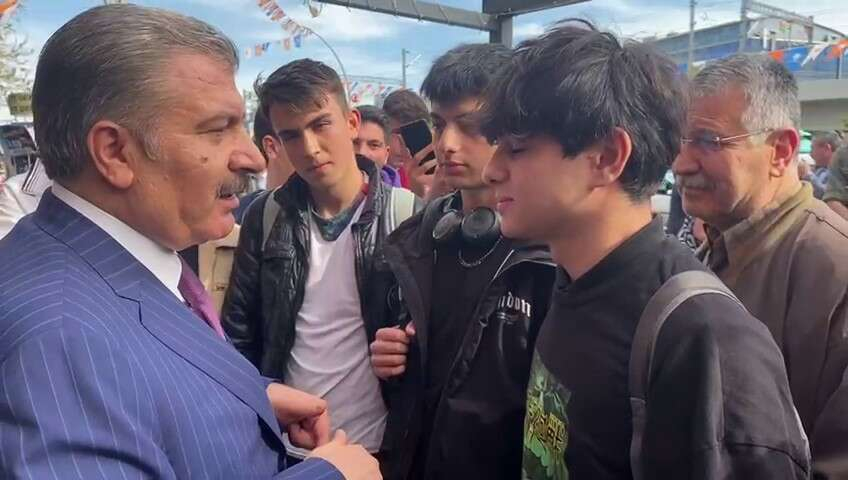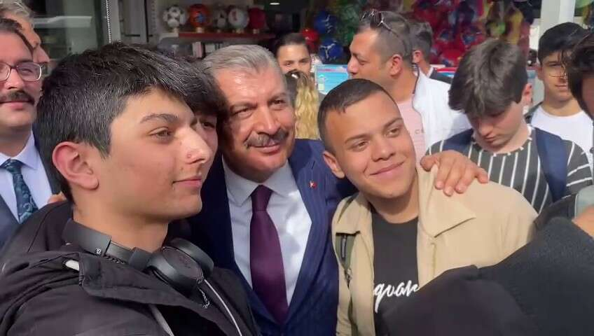 Sağlık Bakanı Fahrettin Koca, esnaf ziyareti sırasında yanına gelen gençlerle sohbet etti. Kendisiyle fotoğraf çektiren bir gencin, "Ben sizi etiketleyeceğim, siz de beni etiketleyin. Sizin takipçiniz çoktur" sözleri gülümsetti.