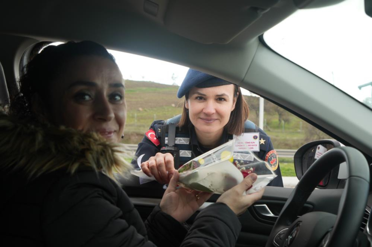 İlçe bölgesindeki yol kontrol noktalarını bizzat denetleyen Jandarma Üsteğmen Refika Taş, Değirmenboğazı Kontrol Noktasında uygulama esnasında denk gelen kadın sürücülere ise 8 Mart Dünya Kadınlar Günü dolayısıyla karanfil verdi. Kadın sürücülerin destek mesajları verdiği anlarda Üsteğmen Taş, sürücülere güvenli sürüşler diledi.