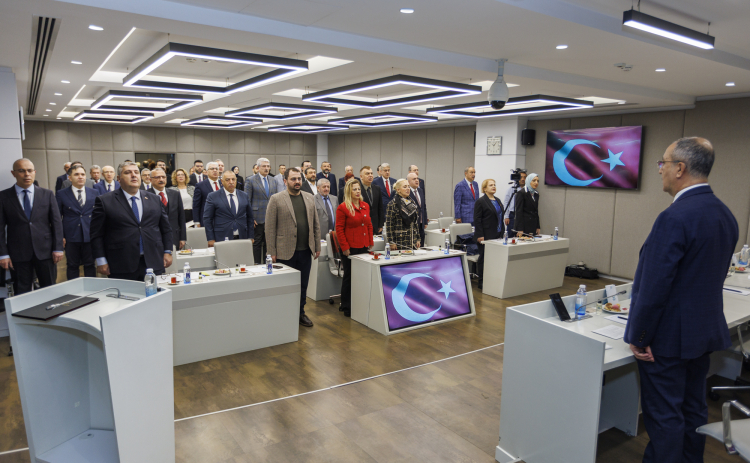 Saygı duruşu ve İstiklal Marşı’yla Genel Kurul’un açılışını yapan Bilgin, yoklama alarak Genel Kurul üyelerine hitaben bir konuşma yaptı.