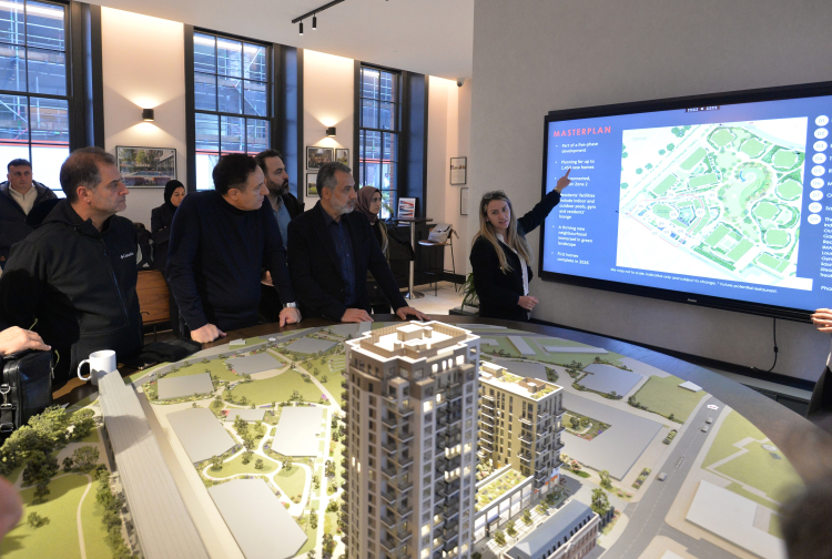 Program kapsamında ilk olarak İngiltere’de önemli projelere imza atan Türk müteahhitlik şirketi Ant Yapı UK Yönetici Müdürü Cengizhan Karaduman ve Genel Müdürü Ertan Demirkıran ile bir araya gelen BTSO heyeti ardından 1931 yılından bu yana faaliyet gösteren The Building Centre’da merkezin Genel Müdürü John Bonning’den sektördeki son gelişmelere ilişkin bilgi aldı ve “New Homes in New Ways” sergisini inceledi.