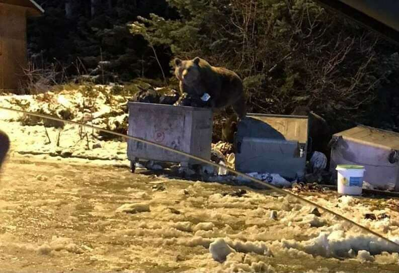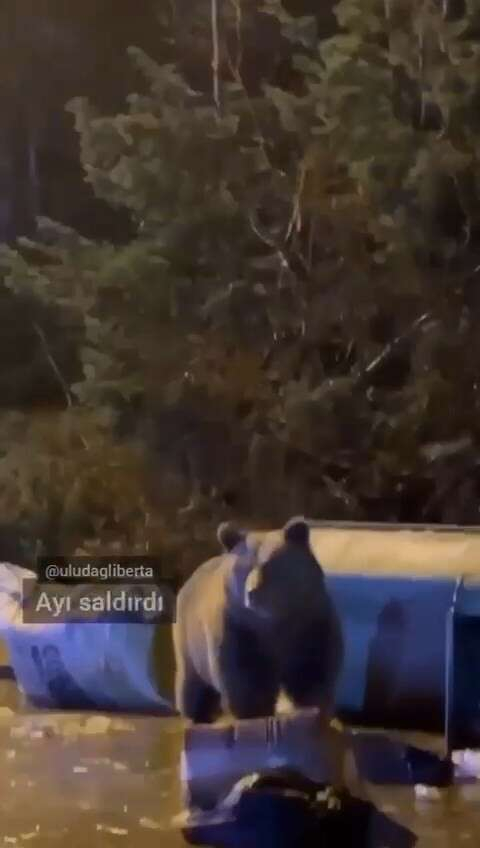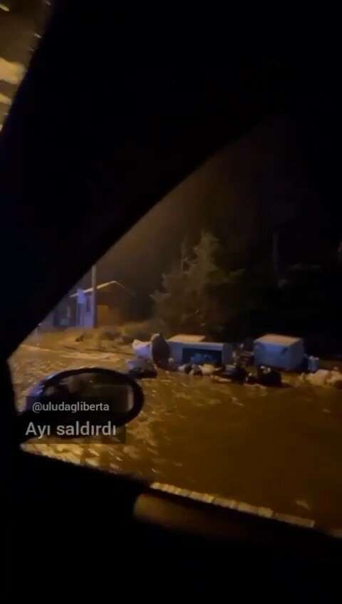 Uludağ’ın Sarıalan mevkiinde aç kalan ayılar yerleşim yerine indi. Burada bulunan çöp kutularında yemek arayan ayılar çöpleri devirdi.