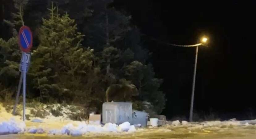 Öte yandan diğer görüntüde ise, ormanlık alanda aç kalan ayı ailesi yerleşim yerine inerek çöp konteynırlarında yiyecek aradı.