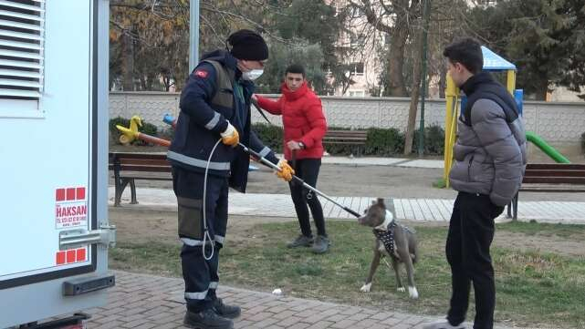 Bursa’da Pitbull cinsi köpeğini kayıt altına aldırmayan bir vatandaş, merkez Osmangazi ilçesi Kanalboyu Mahallesindeki Şehit Samet Saraç çocuk parkına hayvanı bırakıp kaçtı.