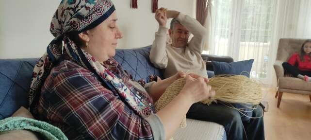 Fabrikadan emekli olan Ali Akbaş'ın emekli olduktan sonra evde cana sıkılmaya başladı. Eşi Emine Akbaş, ile birlikte evde doğal iplerden çanta örmeye başladı. Bu çantaları pazarlarda satmaya başlayan çiftin doğal malzemeyle yapılan çantaları çok beğenildi. Çift yoğun talep alan çantaları yetiştirmek için yoğun tempoda çalışıyor. Elde ilmek ilmek örülerek yapılan çantaların 1 tanesini örmek çiftin bir gününü alıyor. El yapımı çantalar 150 ila 300 lira arasında değişen fiyatlarla satılıyor.