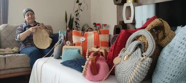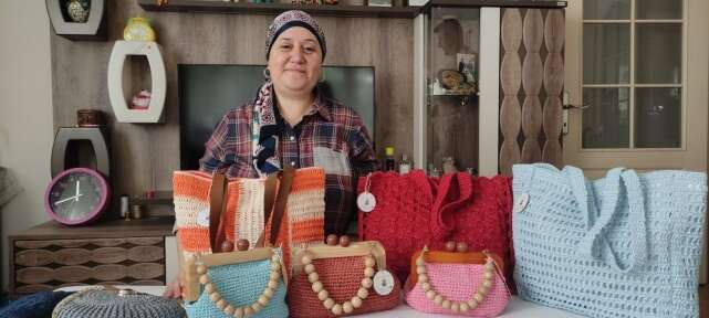 Bursa'da can sıkıntısından evde çanta örmeye başlayan çiftin çantaları büyük talep görüyor.