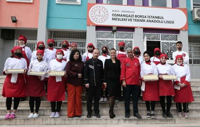 Osmangazi Borsa İstanbul Mesleki ve Teknik Anadolu Lisesi Yiyecek İçecek Hizmetleri Bölümü’nde okuyan öğrenciler baklava yapımını öğrendi.