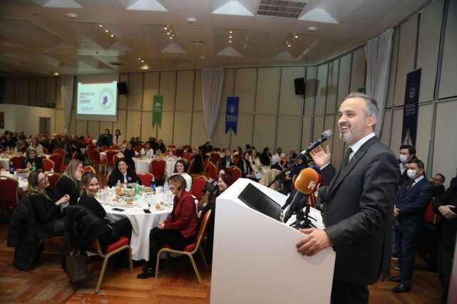 Merinos Atatürk Kongre ve Kültür Merkezi (Merinos AKKM) Yıldırım Beyazıt Salonu'nda düzenlenen buluşmaya, Büyükşehir Belediye Başkanı Alinur Aktaş ve Bursa Kent Konseyi Başkanı Şevket Orhan ile 600’ü aşkın kadın katıldı.