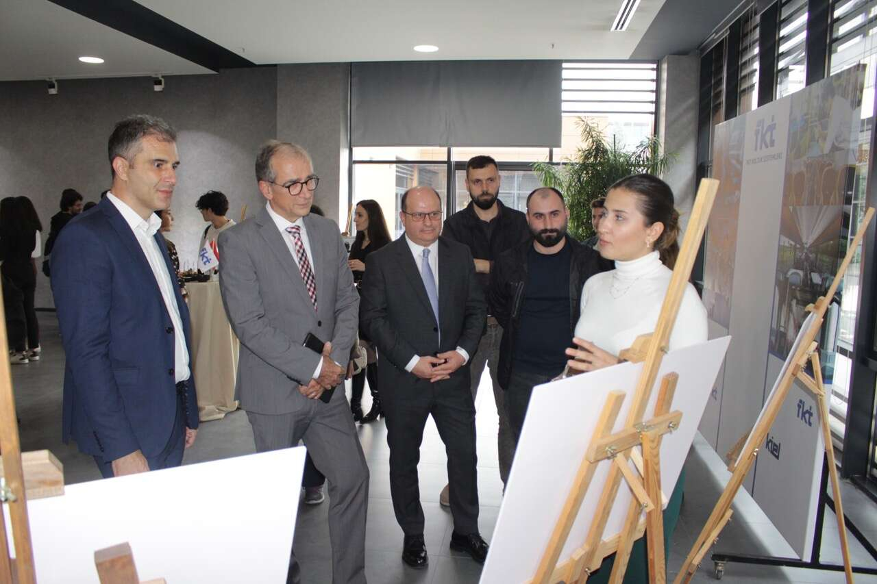 Ödül töreni öncesi yarışmaya katılan öğrencilerin tasarımlarında oluşan sergiyi gezen Jürgen Mill ile Erol Sapçı bir süre öğrencilerle sohbet etti.