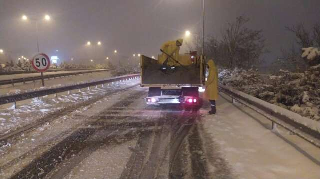 Kış lastiği ve zincir kullanmadan seyreden bazı araçların neden olduğu aksamalar dışında trafikte önemli bir sorun yaşanmazken, sadece son iki gündeki çalışmalarda yaklaşık 5 bin ton tuz kullanıldı.