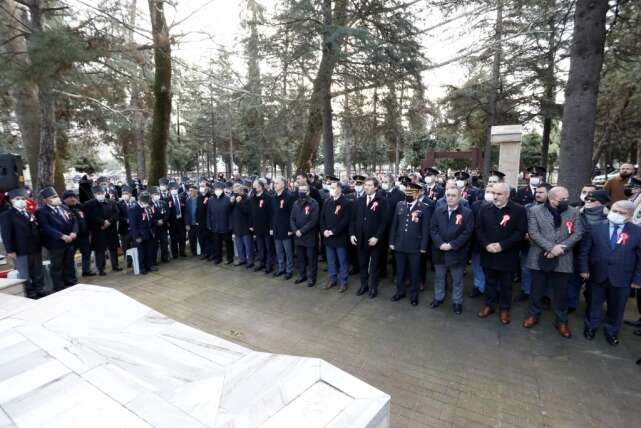 Kaymakamlık ve İnegöl Belediye Başkanlığı çelenkleri Kaymakam Eren Arslan ve Belediye Başkanı Alper Taban tarafından tören alanına sunuldu. Ardından yapılan dualar ve okunan Kuran-ı Kerimlerle devam eden anma töreninde, şehitlerin kabrine karanfil bırakılması ile son buldu.