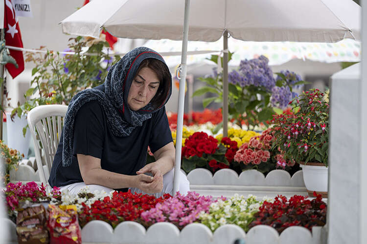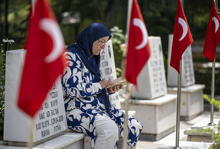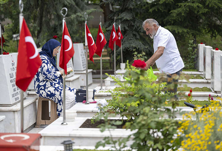 Erken saatlerden itibaren şehitliğe gelen ziyaretçiler, Türk bayraklarıyla donatılmış kabirlerdeki çiçekleri suladı, Kur'an-ı Kerim okudu, dua etti, gözyaşı döktü.