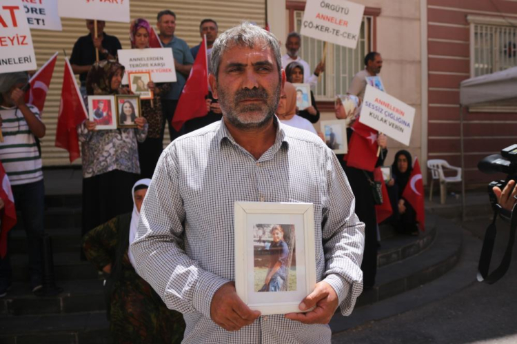 İstanbul’da 2016 yılında 17 yaşındayken kandırılarak dağa kaçırıldığı iddia edilen kardeşi Mizgin Kaydur için Mardin’in Derik ilçesinden Diyarbakır’a gelen Mehmet Nesih Kaydur, annesi Gazal Kaydur ile evlat mücadelesine katıldı.