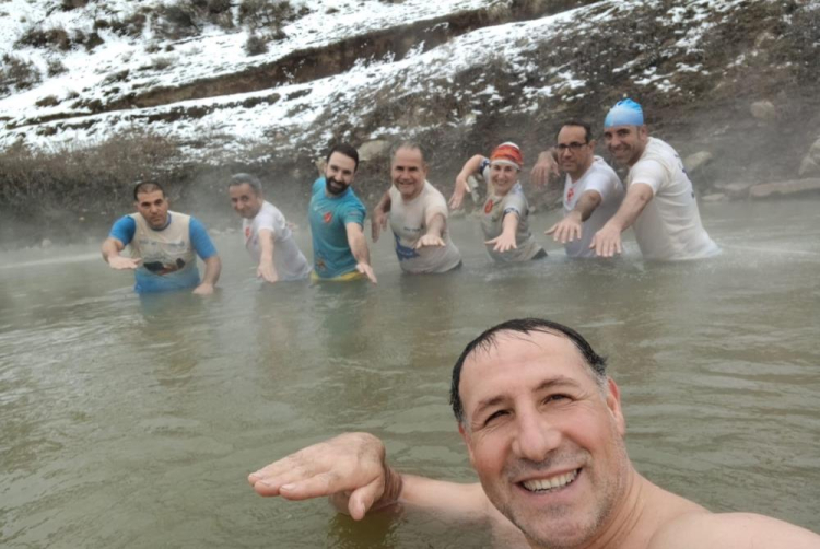 Van Gölü’ne dikkat çekmek için dondurucu havada suya giren Van Gölü Aktivistleri Derneği üyeleri, bugün de kaplıcada sıcak su keyfi yaşadı.