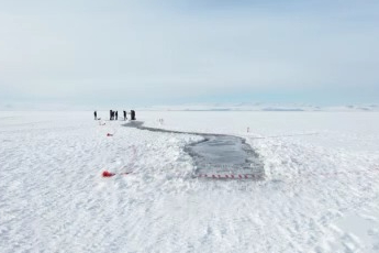 Donmuş gölün üstünde adrenalin dolu gösteri