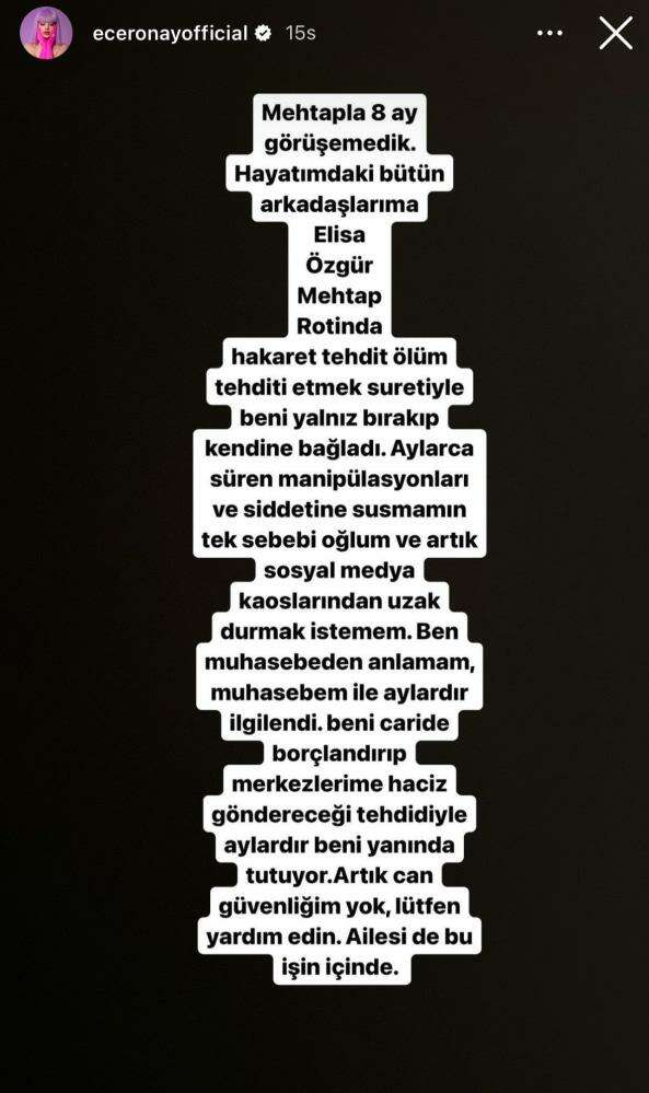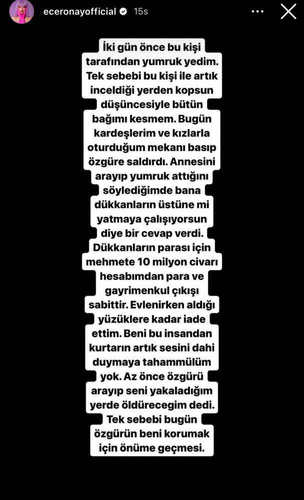 Şarkıcı Ece Ronay, sosyal medyada paylaşım yaparak 1 ay önce uzaklaştırma kararı aldığı eski eşinden şiddet gördüğünü ifade etti.