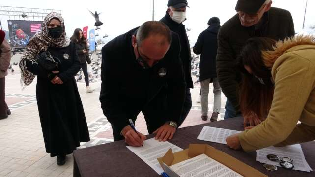 Gemlik İskele Meydanı'nda çevrecilerle birlikte imza kampanyası düzenleyen Sertaslan toplanan imzalar neticesinde Gemlik için halen bir umudun var olduğunu söyledi.