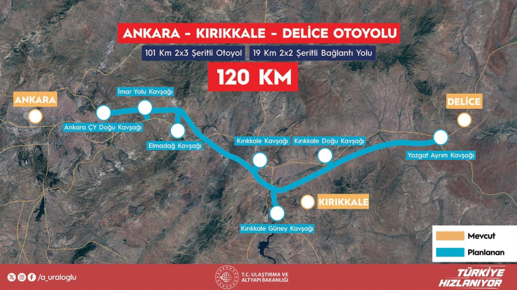 Ulaştırma ve Altyapı Bakanı Abdulkadir Uraloğlu, Ankara-Kırıkkale-Delice ve Antalya-Alanya otoyollarının proje yapım sözleşmelerini 14 Ekim Pazartesi günü imzalayacaklarını belirterek yapım çalışmalarının ise 2024 yılı bitmeden başlayacağını duyurdu. Bakan Uraloğlu, yıllık olarak Ankara-Kırıkkale-Delice Otoyolu sayesinde 3,3 milyar lira, Antalya-Alanya Otoyolu sayesinde de 6,6 milyar lira tasarruf sağlanacağının altını çizdi.