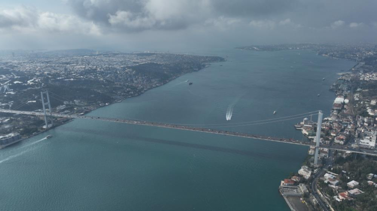 Sabah saatlerinde de etkisini sürdüren kar yağışı sonrasında İstanbul Boğazı ve çevresinde kartpostallık görüntüler oluştu. Kar manzarası havadan çekilen görüntülere yansıdı.